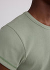 Our T-shirt is crafted of recycled and deadstock ribbed cotton. The fabric has a compact hand and subtle melange effect that imparts a vintage-inspired feel. Cut to a slim, shrunken fit, it sits close to the body while contrast flatlock stitching adds an intriguing finish.