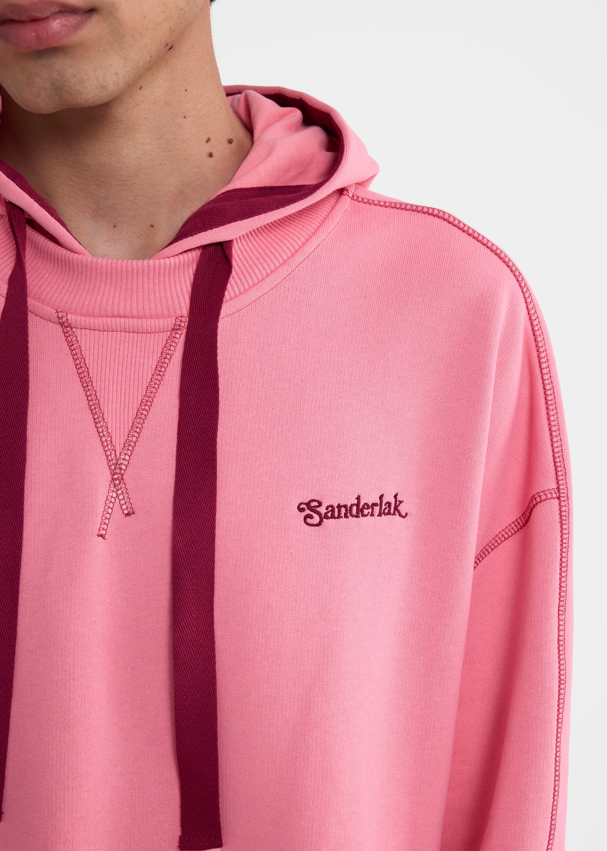 Our hoodie is crafted of soft deadstock loopback fleece in slightly-structured melange cotton jersey. Cut to a boxy, oversized fit, it features a hybrid hood-and-crew neckline with vintage-style V stitching. A stepped hem refines the relaxed silhouette, finished with tonal Sanderlak embroidery at the chest.