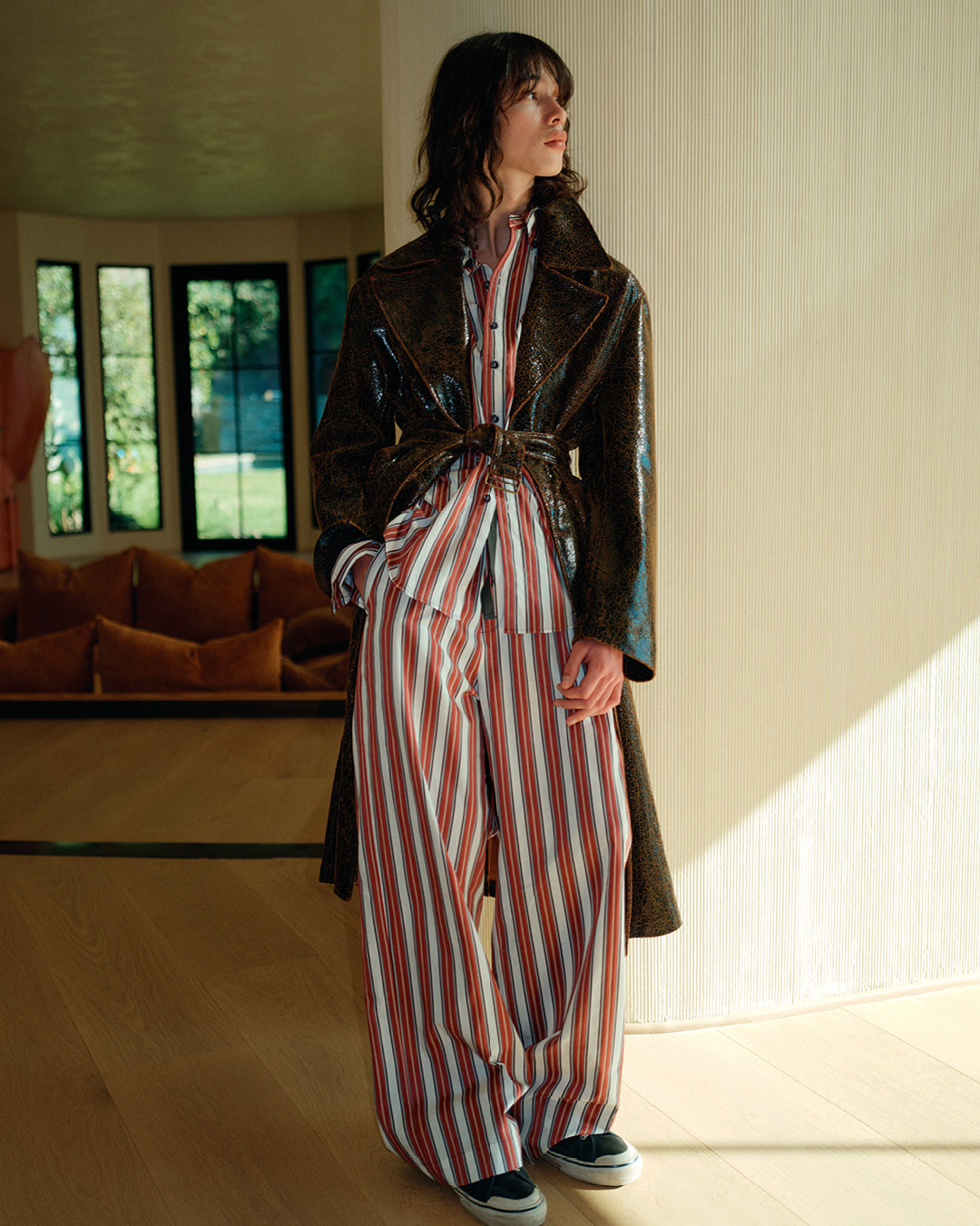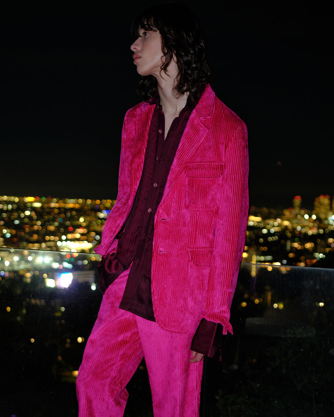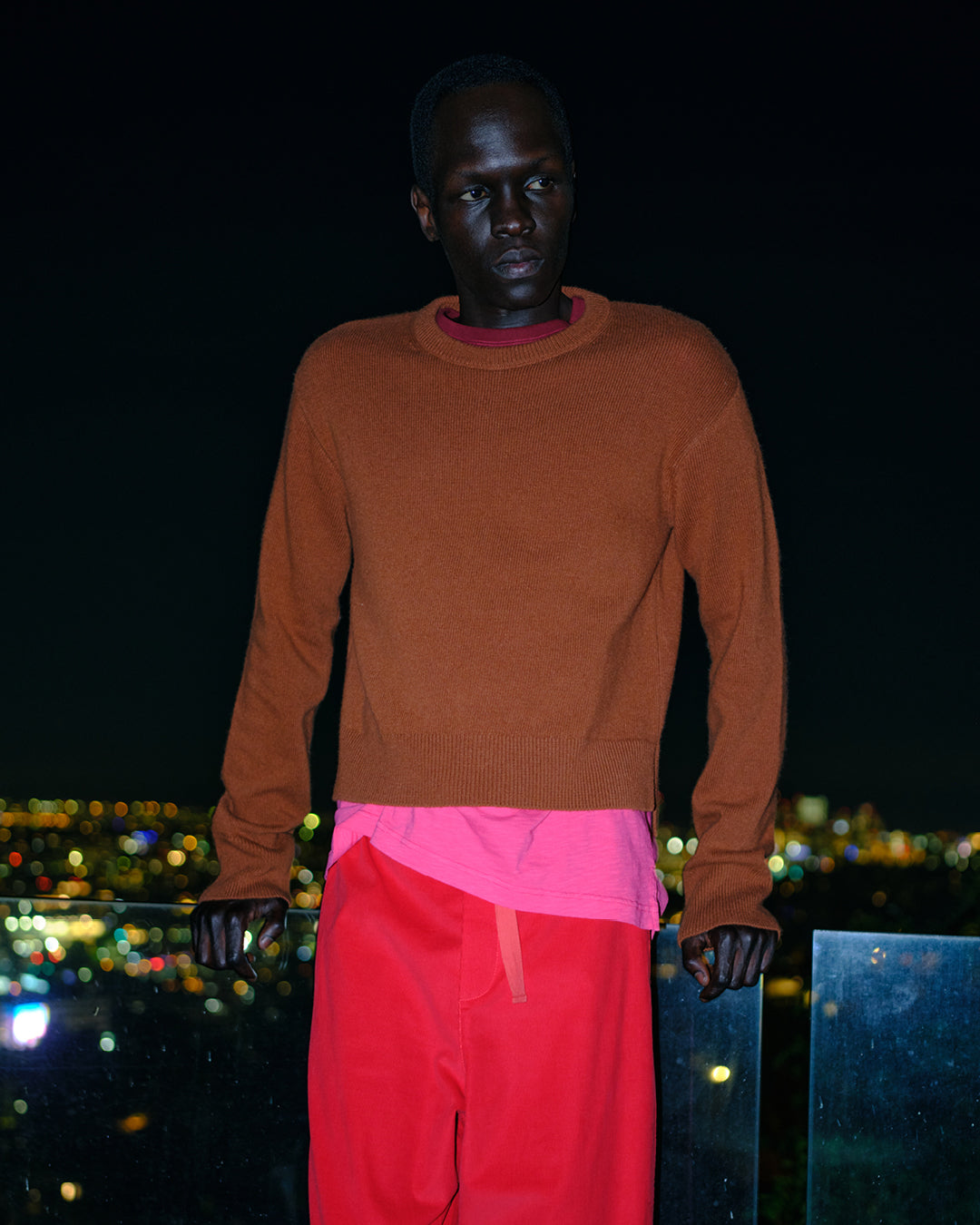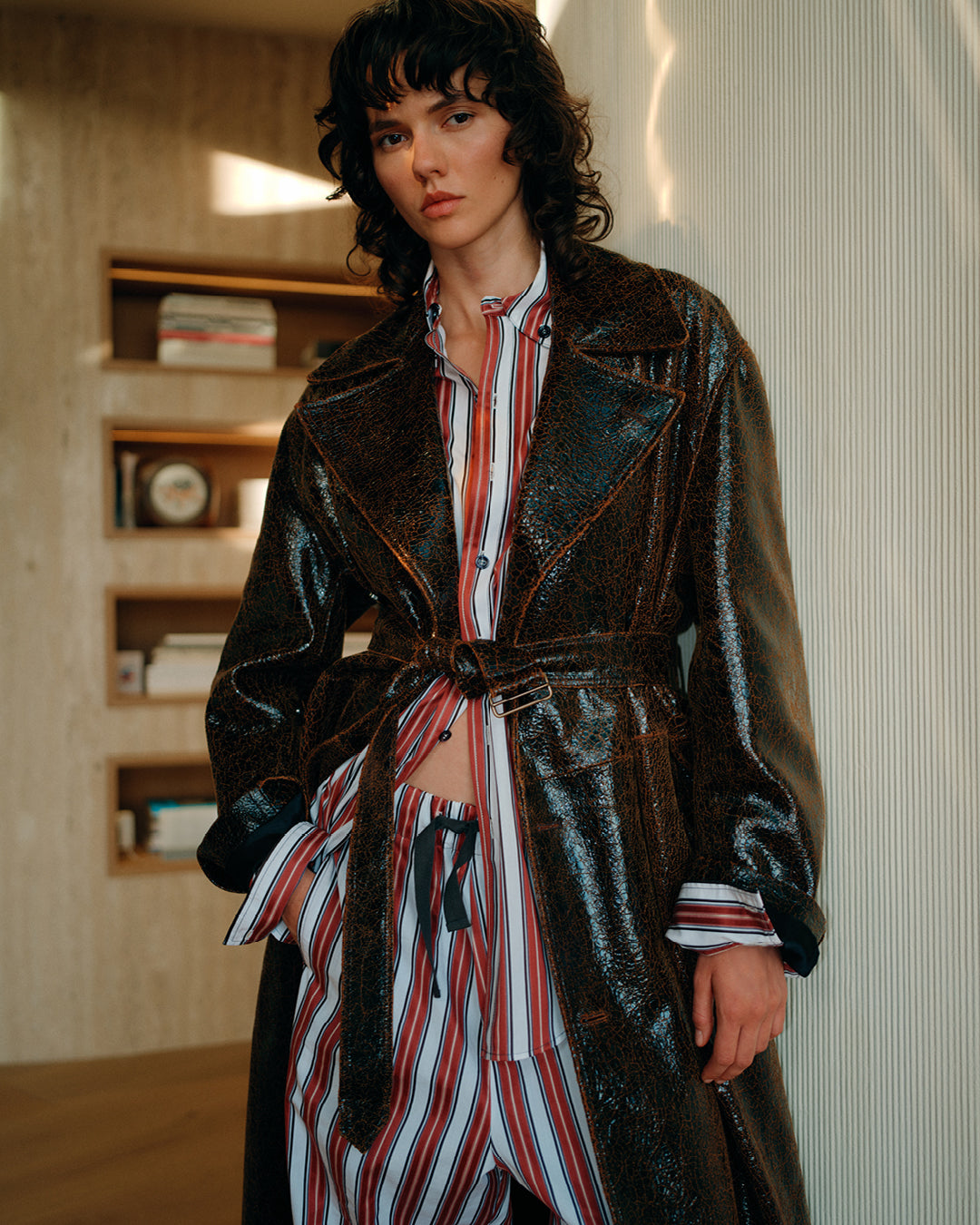 Built from small, unplanned moments, the collection showcases a palette that feels simultaneously alluring and uneasy. Shining surfaces, cracked textures, and worn materials carry the marks of time, holding both glamour and decay in the same frame to reveal a tension that reflects the city itself.