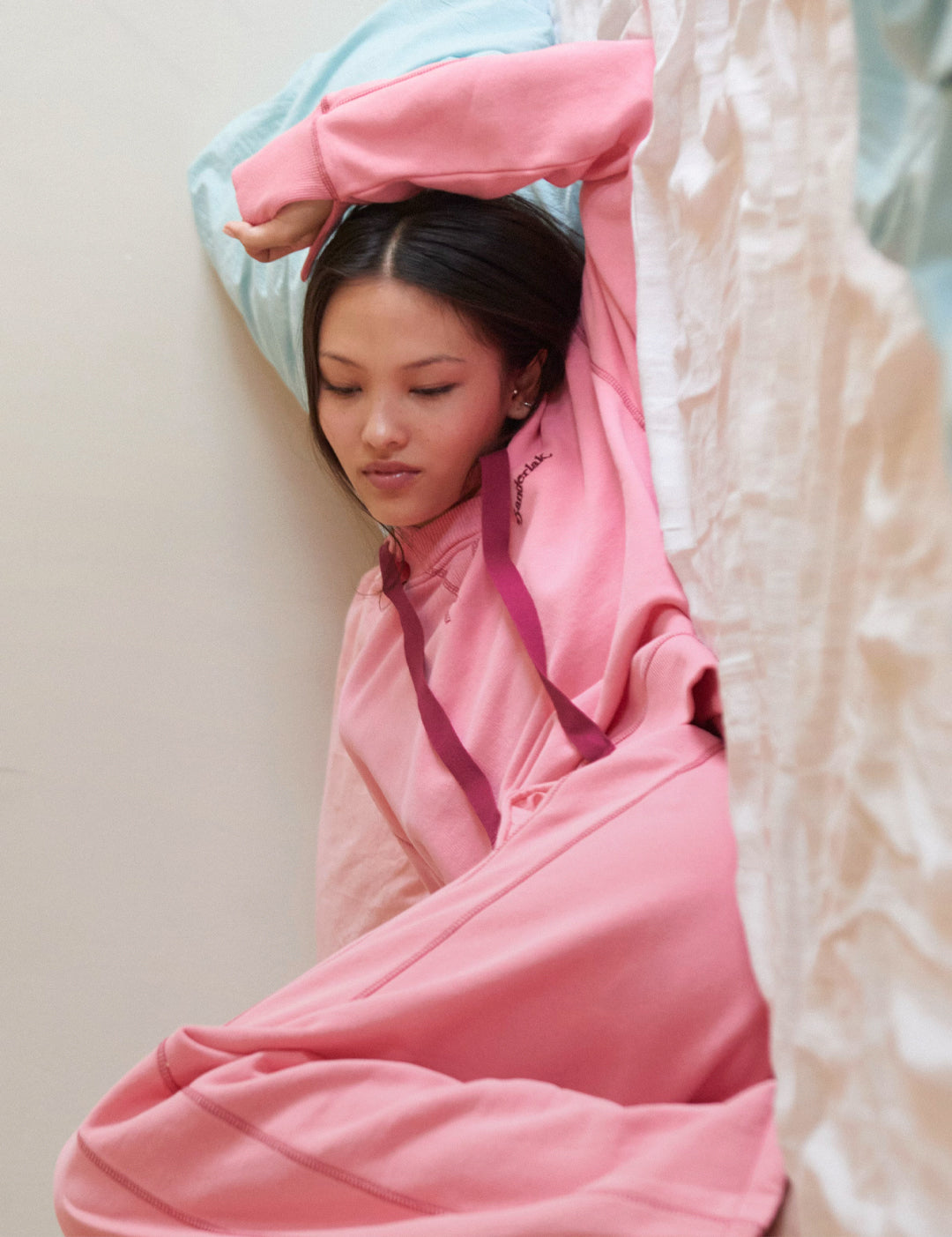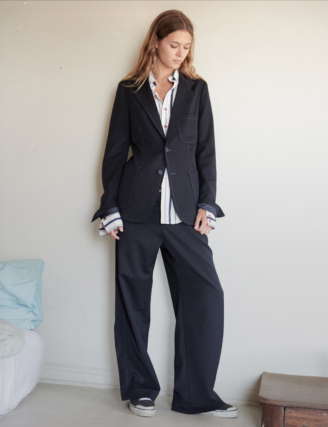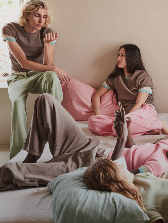 Grounded in menswear, the brand is intended for all to wear. Each piece is designed with ease and can be worn to climb back into bed––or just stepping out of it.