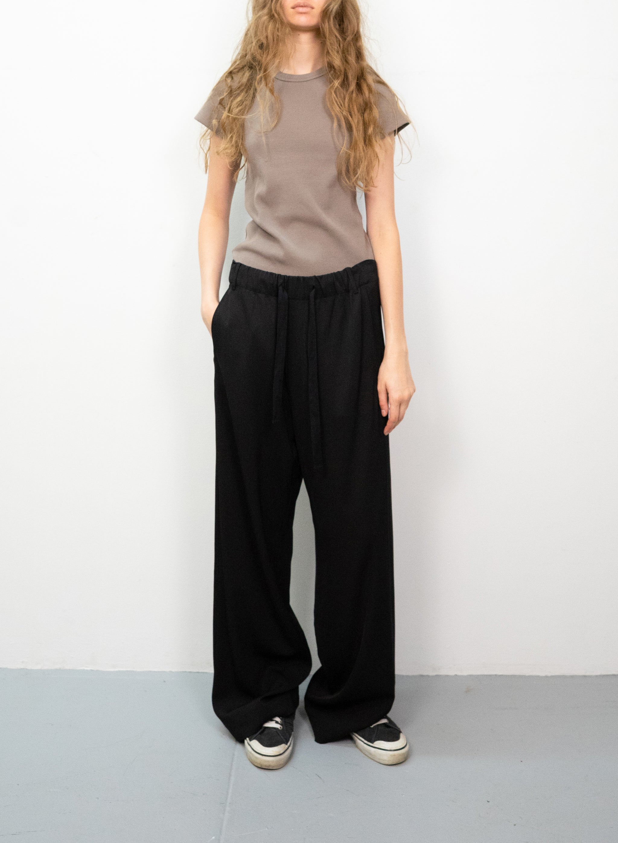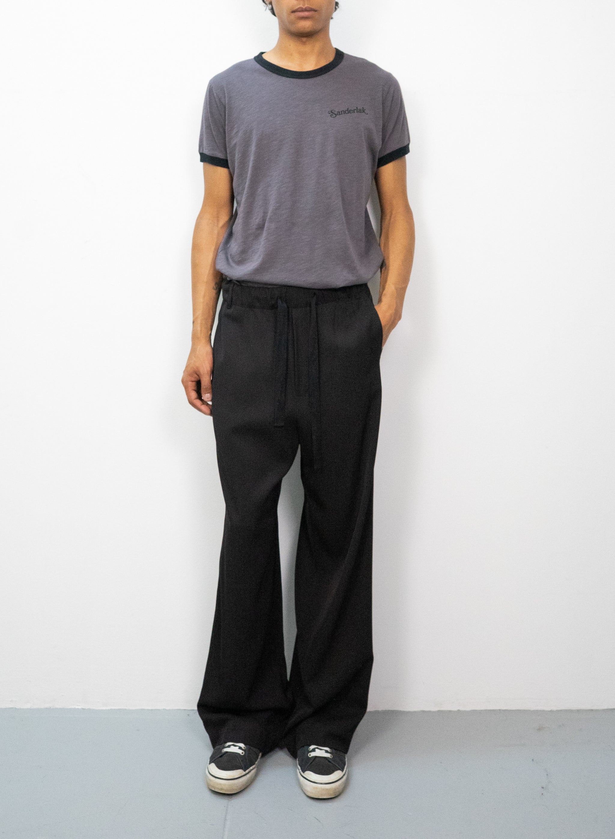 Our wide-leg pants are cut in mid-weight viscose that has an easy drape. A tonal drawstring at the elasticated waistband and the generous fit impart pajama-inspired ease and fluid movement to the design while side panels and an embroidered Sanderlak patch lend subtle signature finishes.