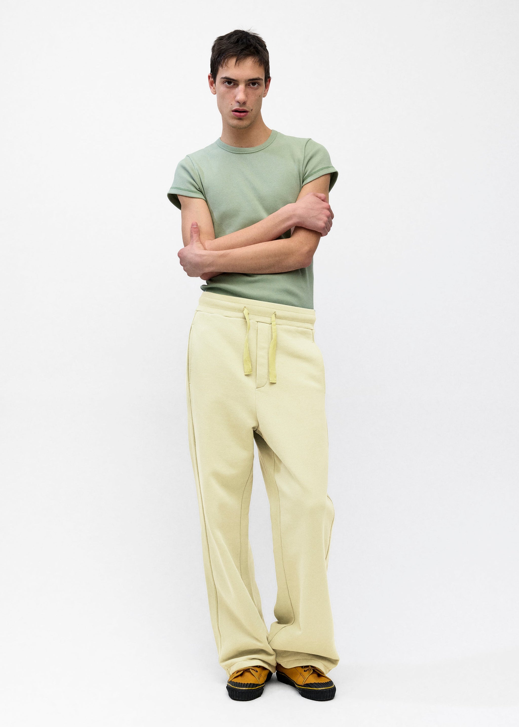 Our sweatpants are crafted of soft deadstock loopback fleece in slightly-structured mid-weight cotton jersey. Designed with a relaxed straight-leg silhouette, they feature a ribbed drawstring waistband with contrast flatlock stitching throughout. Side panels lend movement and shape to the fit.