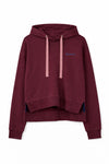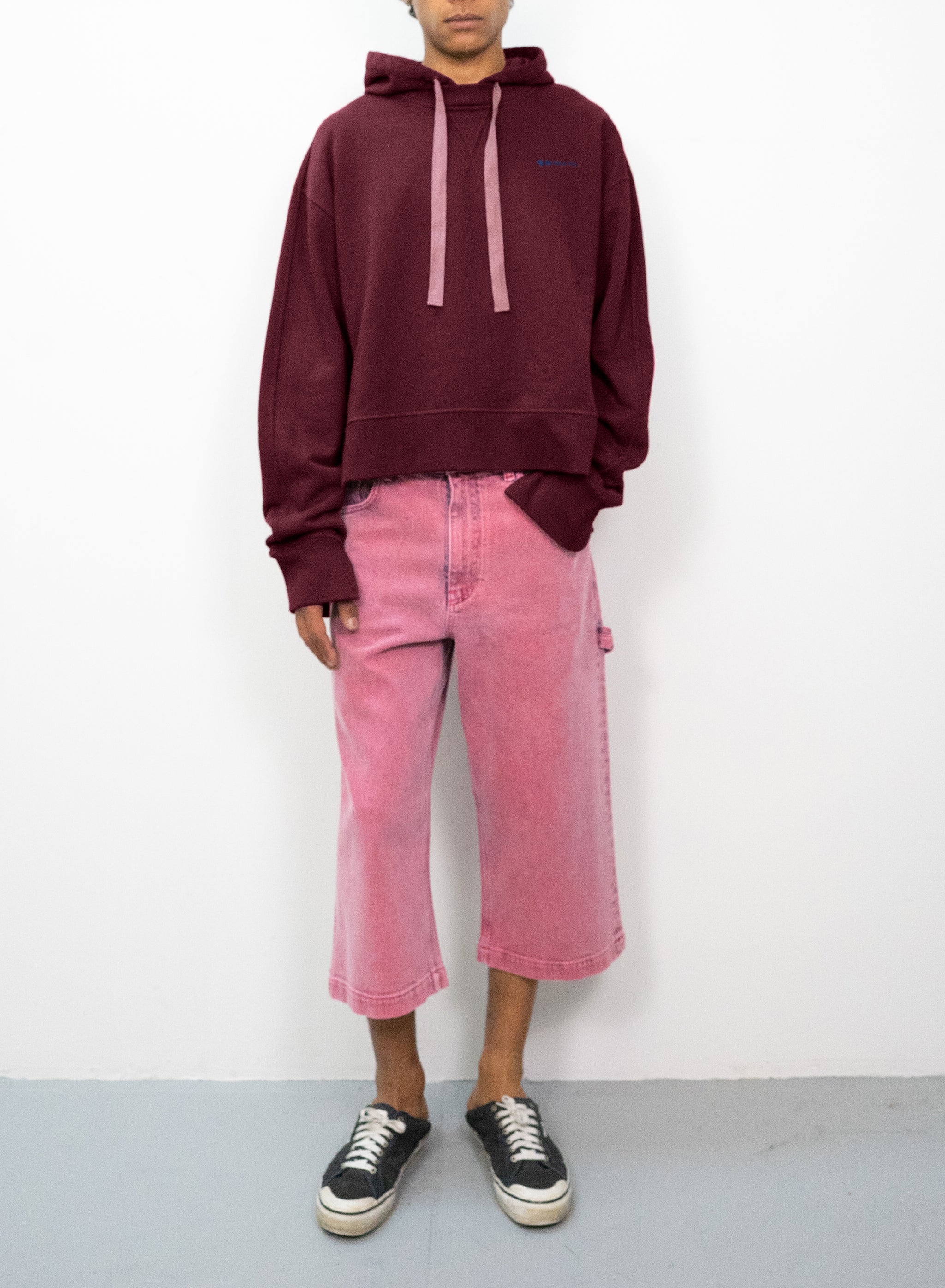 Our hoodie is crafted of soft deadstock loopback fleece in slightly-structured mid-weight cotton jersey. Cut to a boxy, oversized fit, it features a hybrid hood-and-crew neckline with vintage-style V stitching. A stepped hem refines the relaxed silhouette, finished with tonal Sanderlak embroidery at the chest.