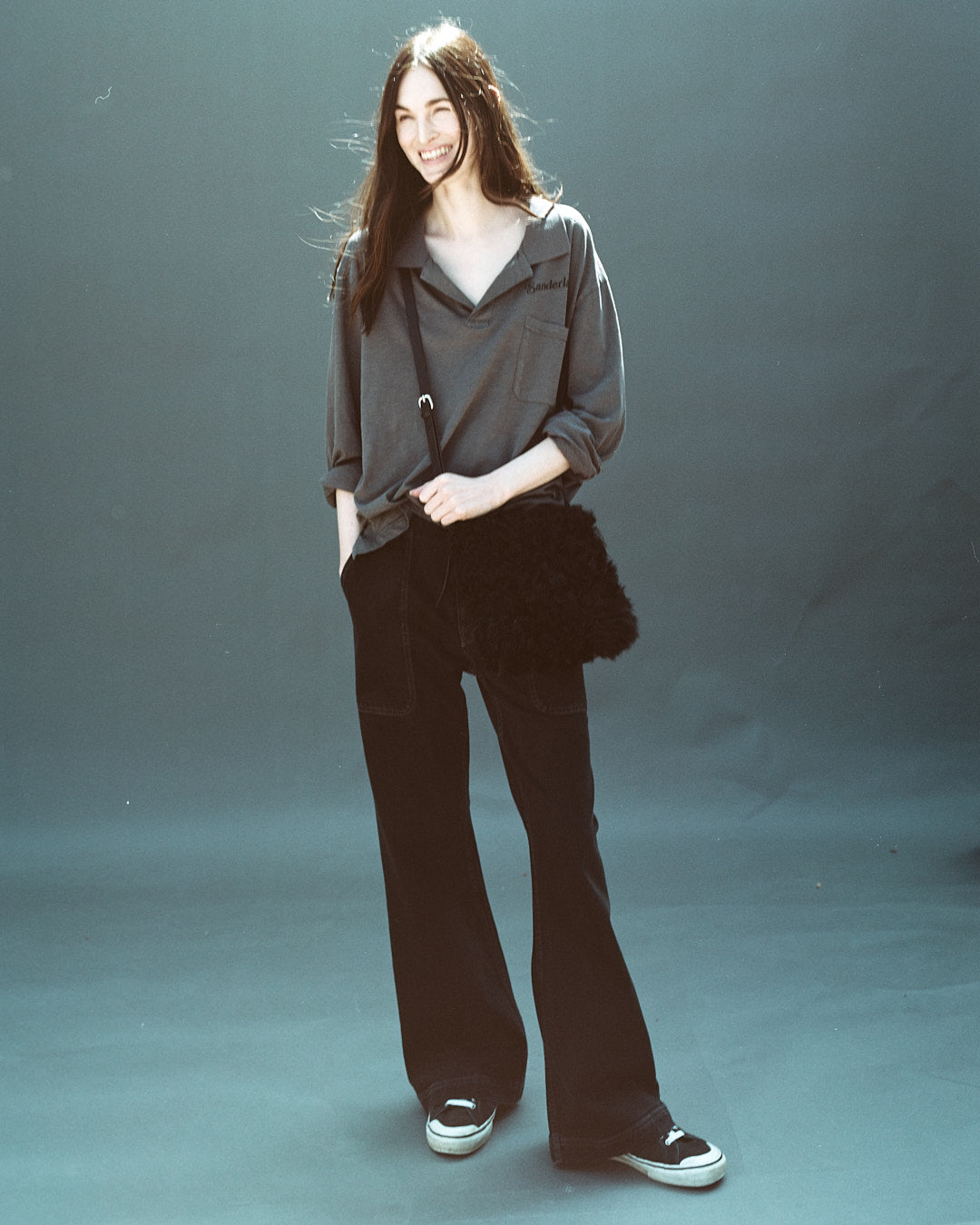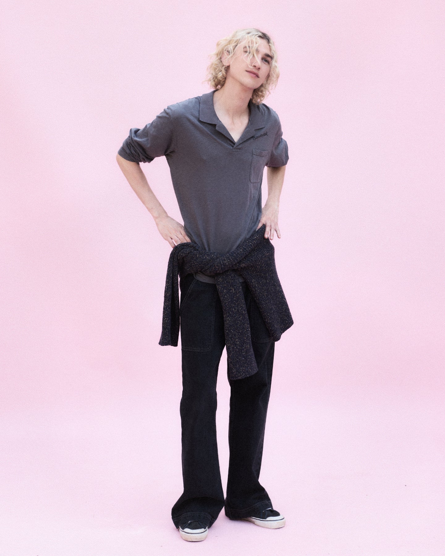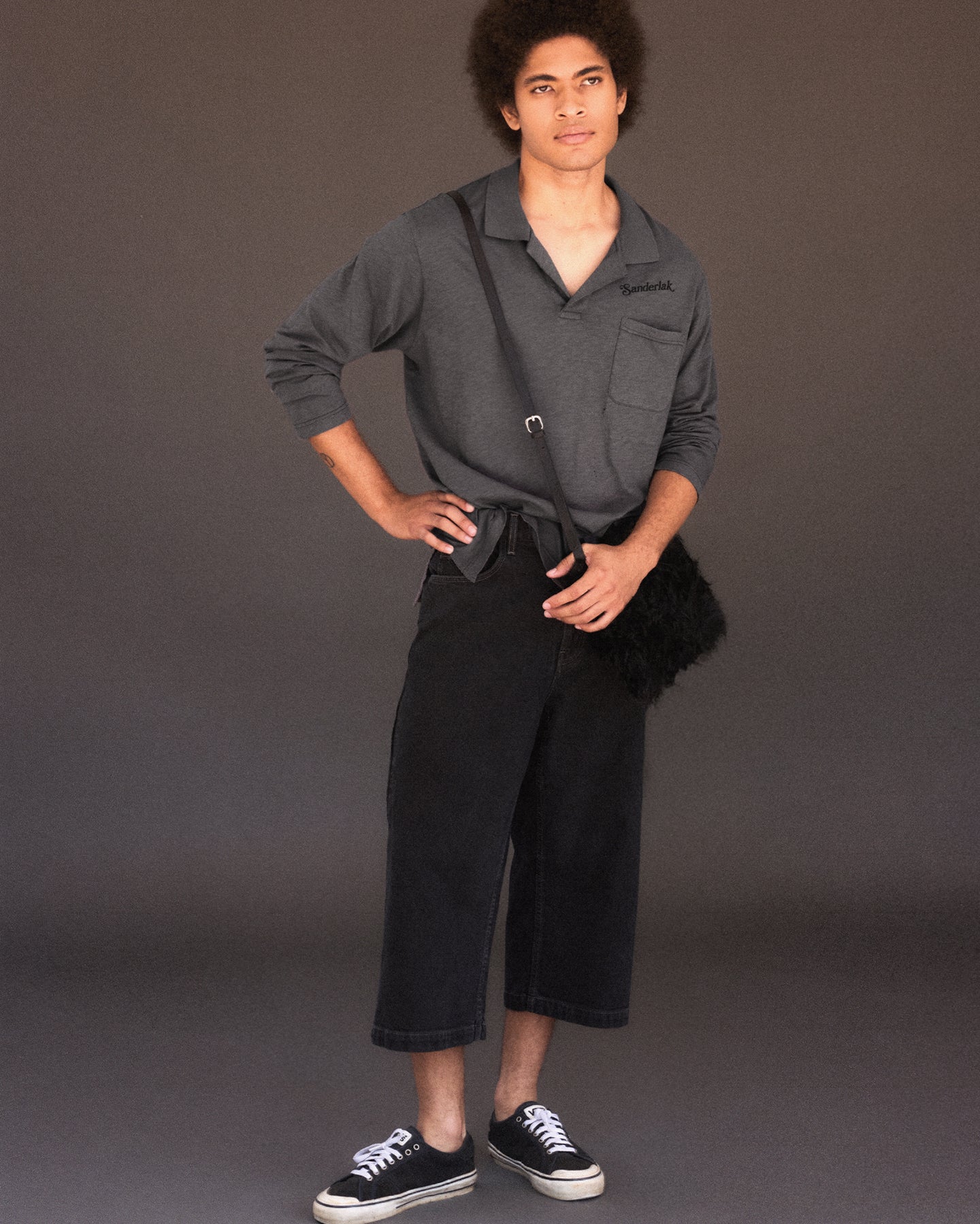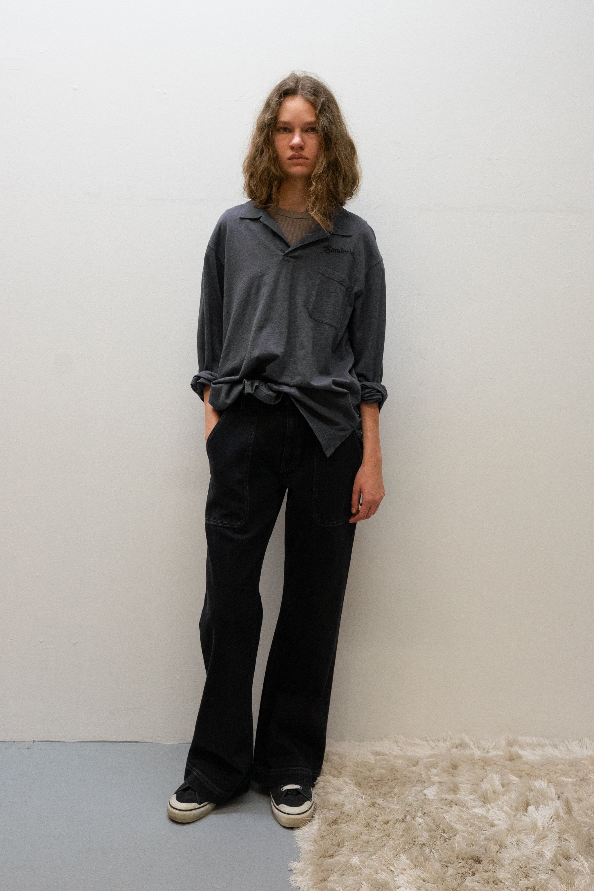Our polo is crafted of soft, slubbed cotton jersey and cut to a relaxed, drapey fit. Topped with a ribbed, open collar, the lightweight style features a vented hem for additional movement and is printed with a contrast Sanderlak logo at the chest for a signature touch.