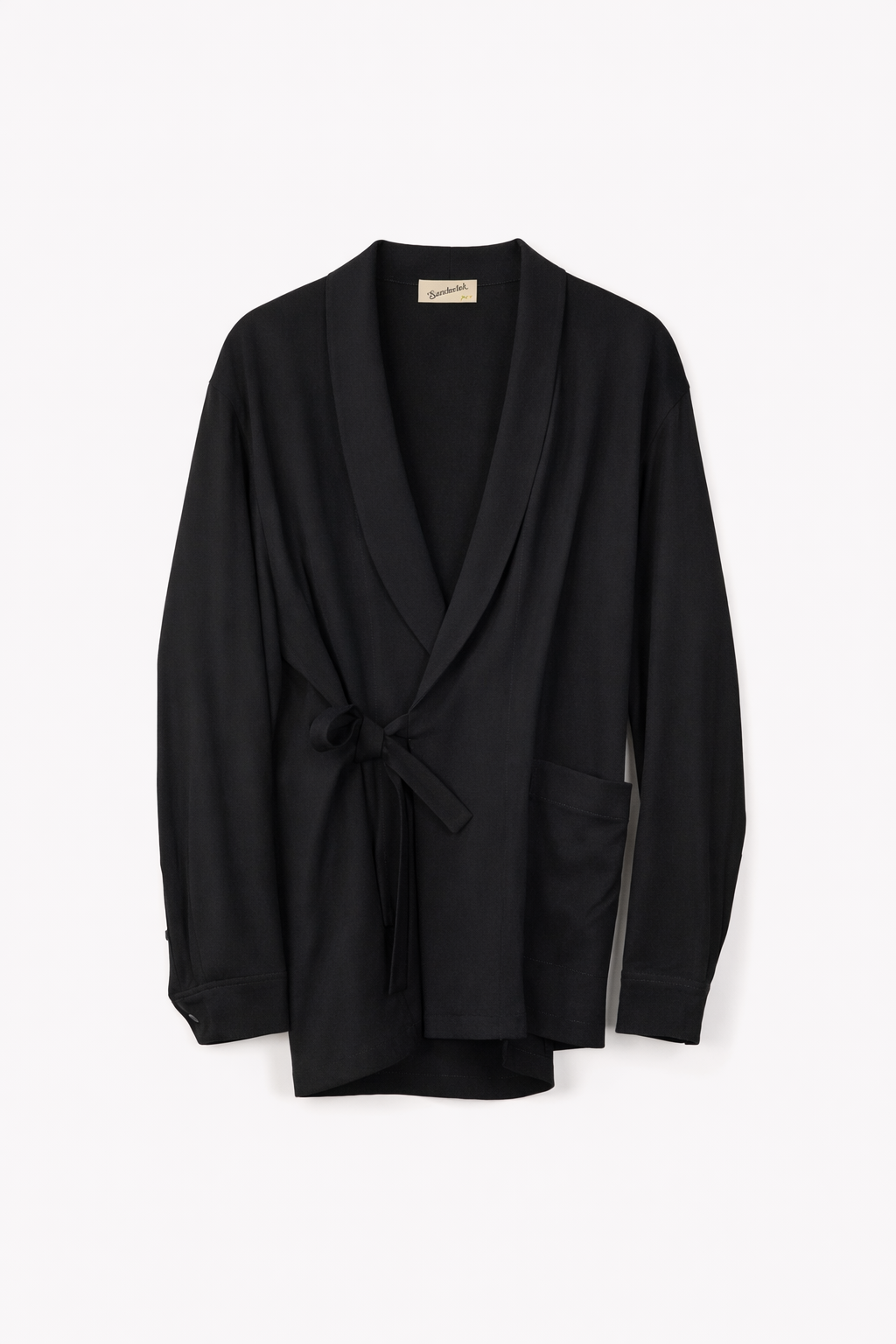 Our shawl-collar shirt reinterprets pajama ease with tuxedo-like refinement. Cut from mid-weight viscose with a fluid yet substantial drape, it features internal and external side-tie closures to add structure. Tonal topstitching throughout and the relaxed fit underscore its effortless versatility, bridging shirt and jacket, casual and formal.Ê